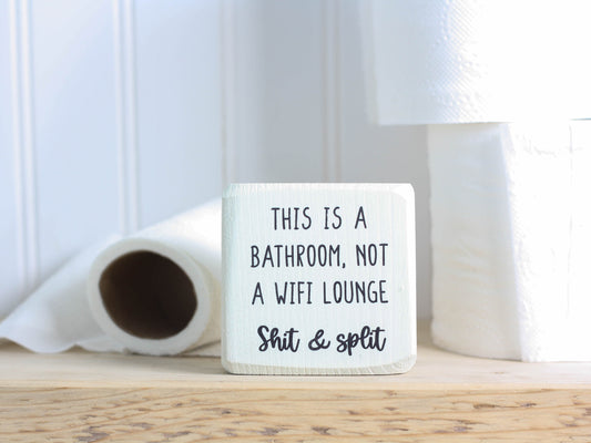 Small Wooden Sign - This is a bathroom, not a wifi lounge.