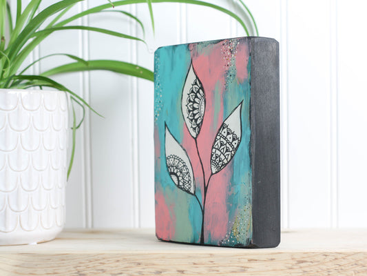 Adding a pop of colour to your home is easy-peasy with our fun selection of handmade art blocks and other mixed media art pieces.
