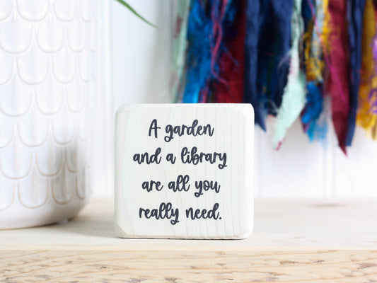 Small Wooden Sign - A garden and a library