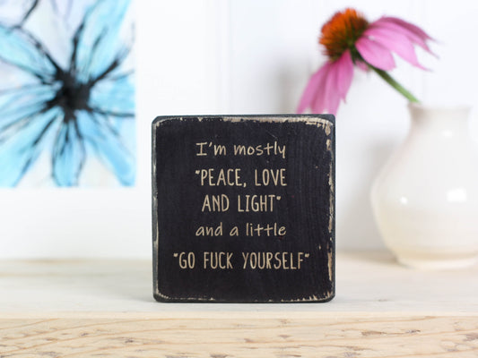 Small Wooden Sign - Peace love light