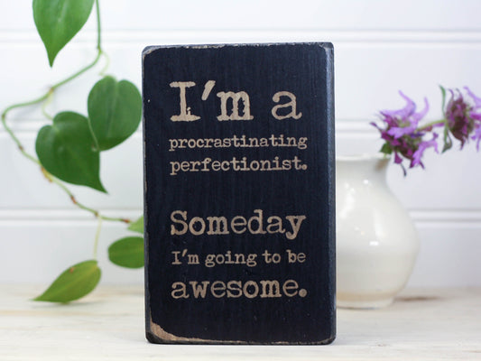 Small Wooden Sign - procrastinating perfectionist