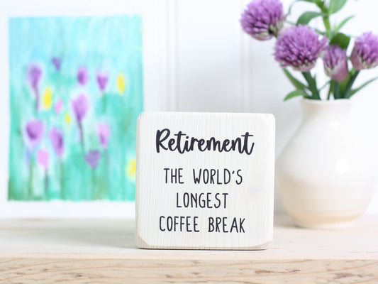 Small Wooden Sign - Retirement: the world's longest coffee break