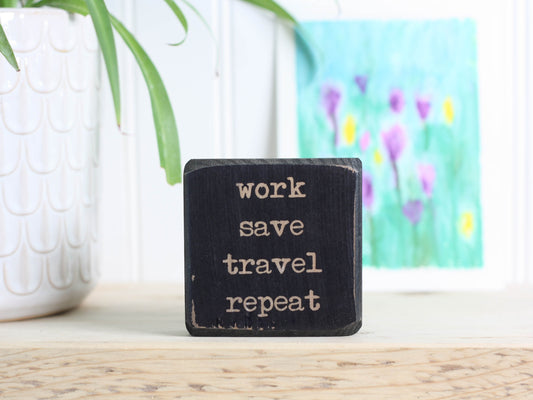 Small Wooden Sign - work save travel repeat