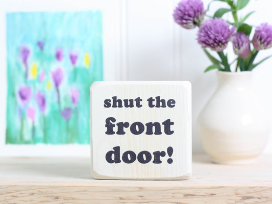 Small Wooden Sign - Shut the front door!