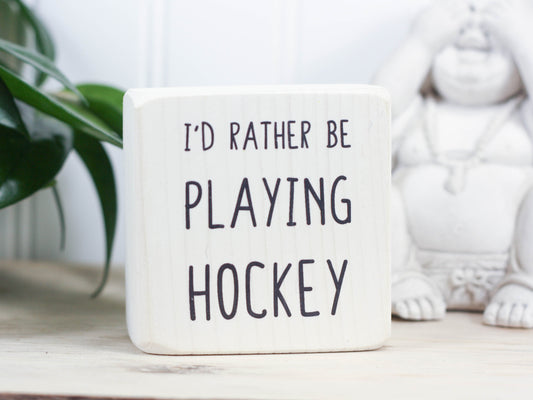 Small Wooden Sign - I'd rather be playing hockey