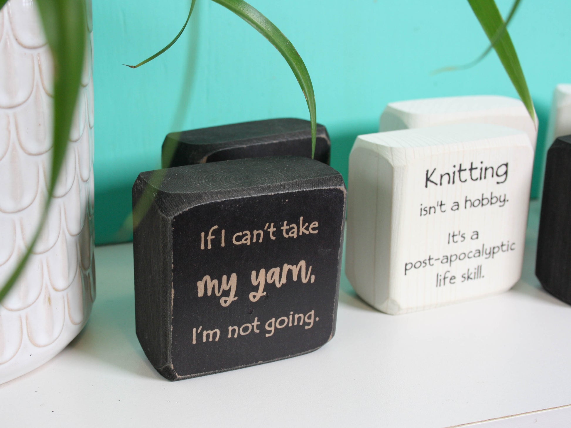 This Curated Pack is perfect to get you started (or keep you going) with a dozen of our yarn-themed block signs. Our local wool mill has carried them for years, both at their retail store on site, and at various events. The owner says that her customers love them!